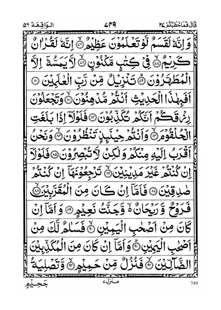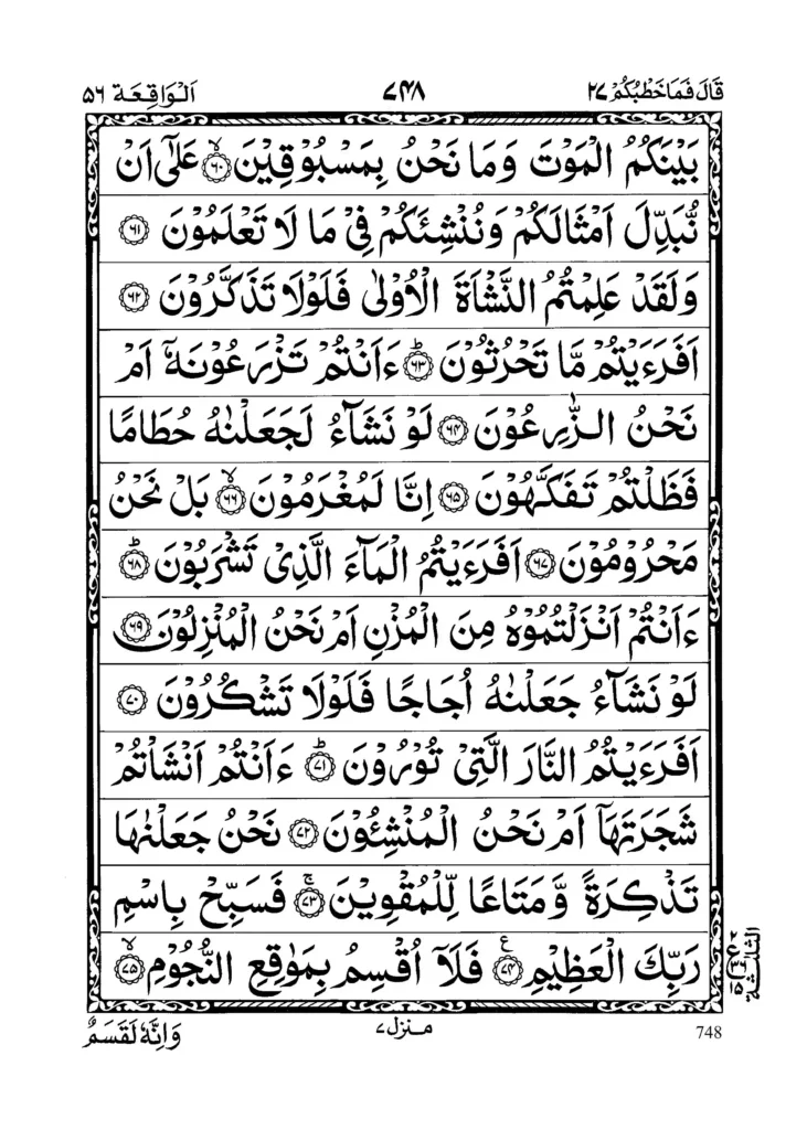 Surah Waqiah Read Online (سورة الواقعة) is the 56th chapter of the Holy Quran, also it was revealed in Makkah. has 96 verses and is called The Event. Because this Surah describes the Day of Judgment and divides people into three groups: the foremost believers, the people of the right, and the people of the left. Reciting it protects from poverty, brings blessings in sustenance, and strengthens faith. On this page, you can read it online in Arabic, explore its benefits, and also download the full version in PDF format for easy reading.